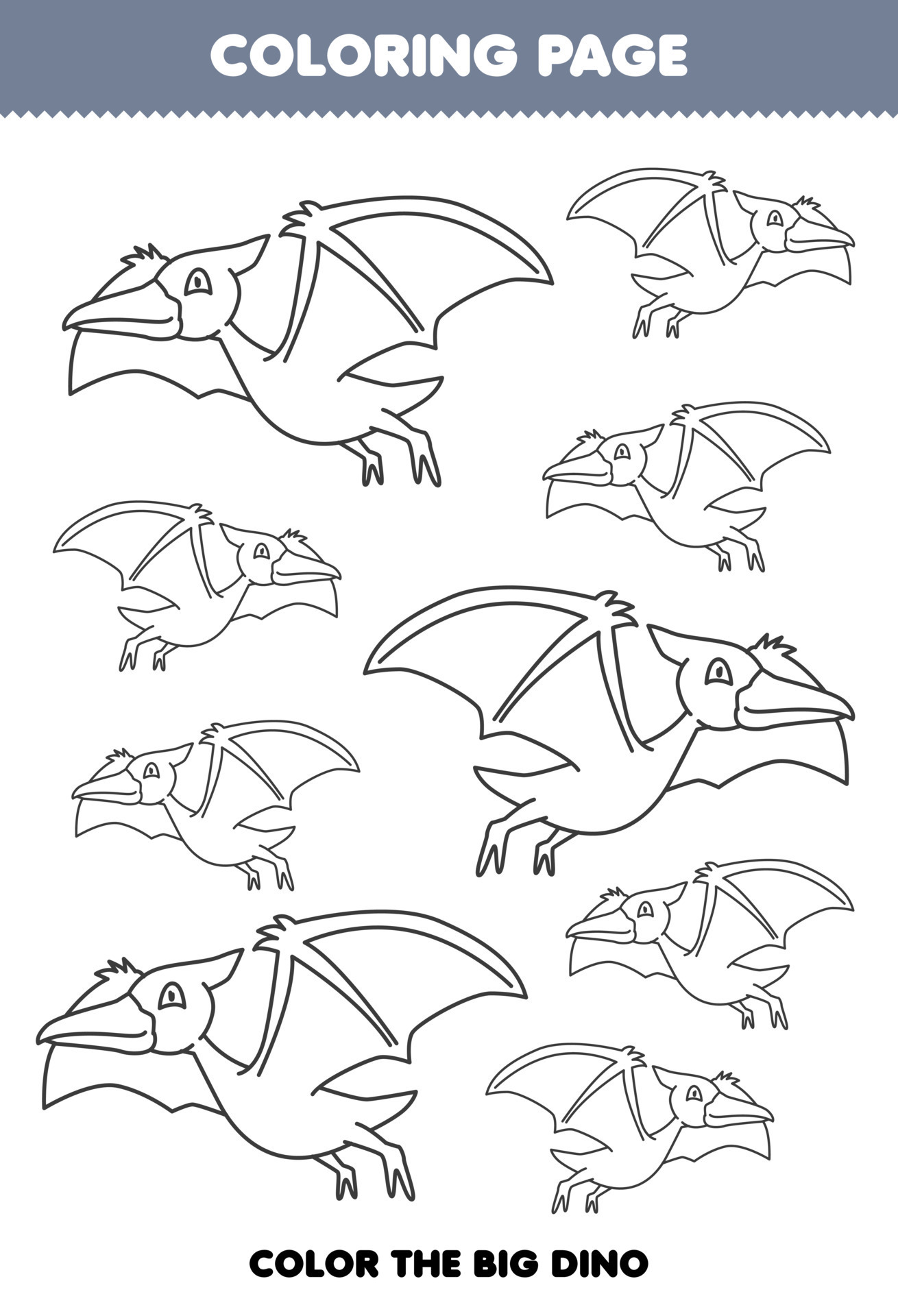 Education Game For Children Coloring Page Big Or Small Picture Of Cute Cartoon Prehistoric Dinosaur Pteranodon Line Art Printable Worksheet 10067079 Vector Art At Vecteezy